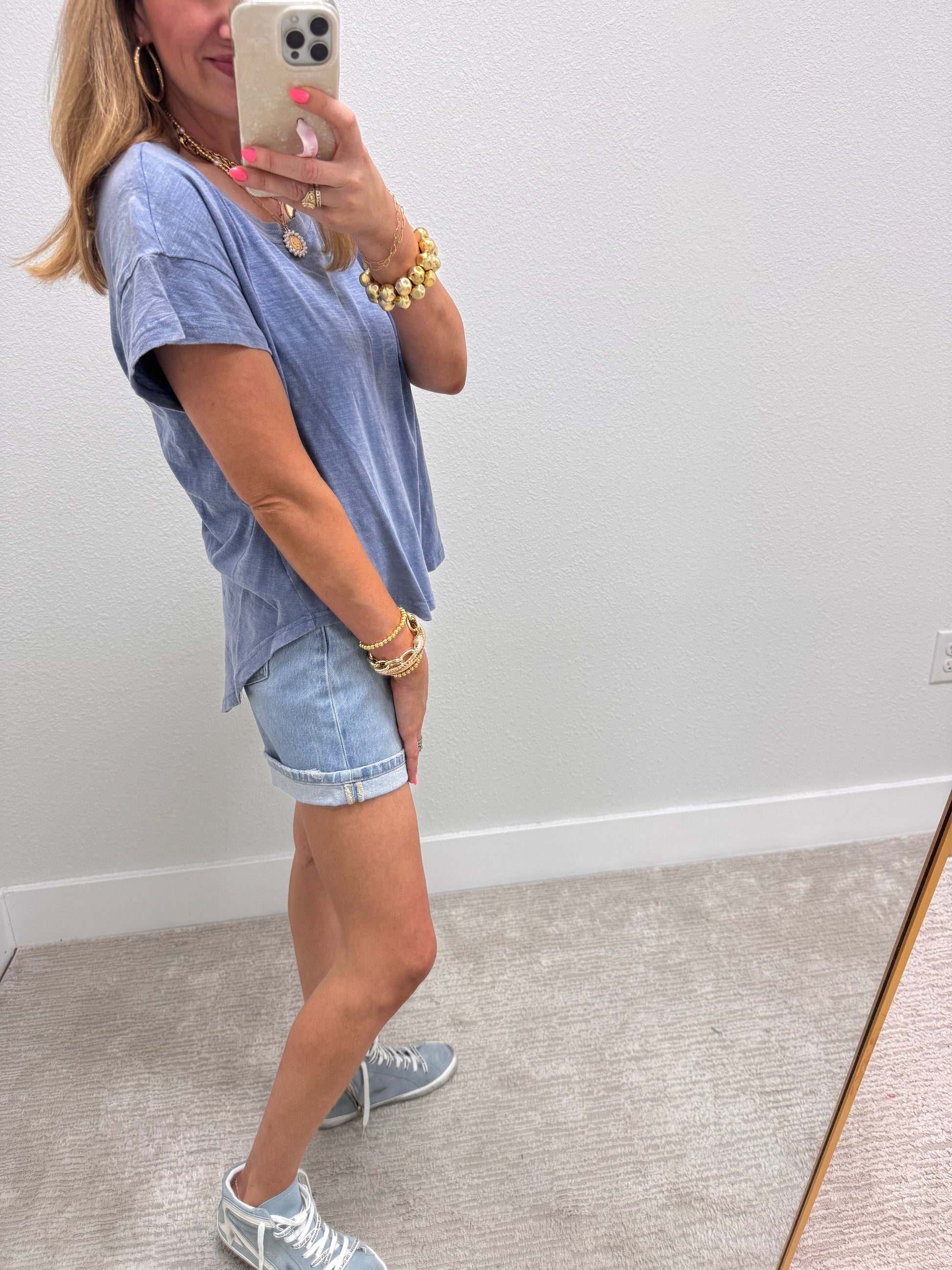 I ordered this top because of the back. It is such a fun and cute little detail. It is a relaxed fit, Macy is a 2/4 and 5’7 wearing the small