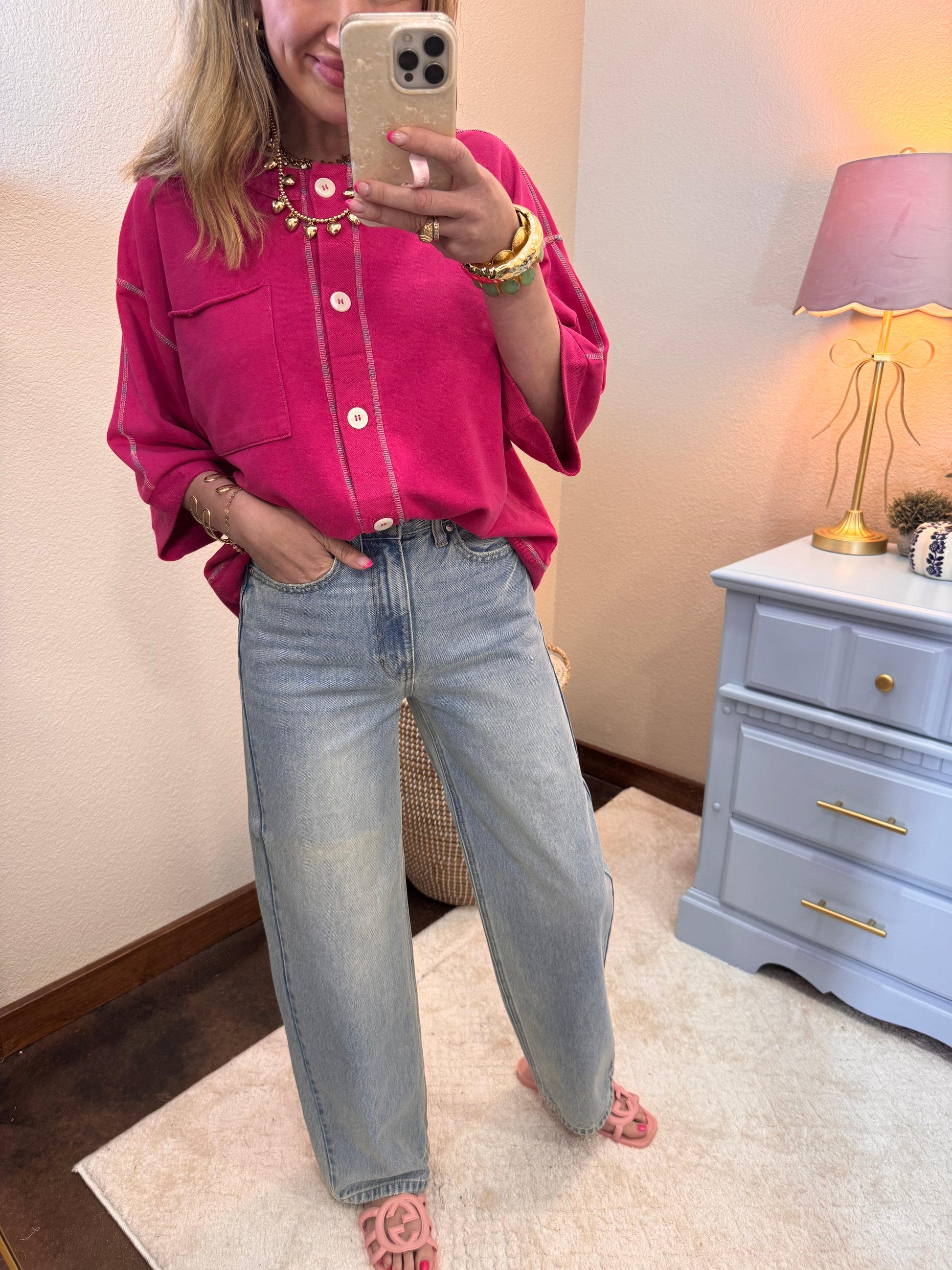 How cute is this little top?! It has cute ombré multi colored stitching and the best little wide arms. It could honestly even be worn unbuttoned over a cute tank as well. Roomy/relaxed fit, Macy is a 2/4 and 5’7 wearing the small