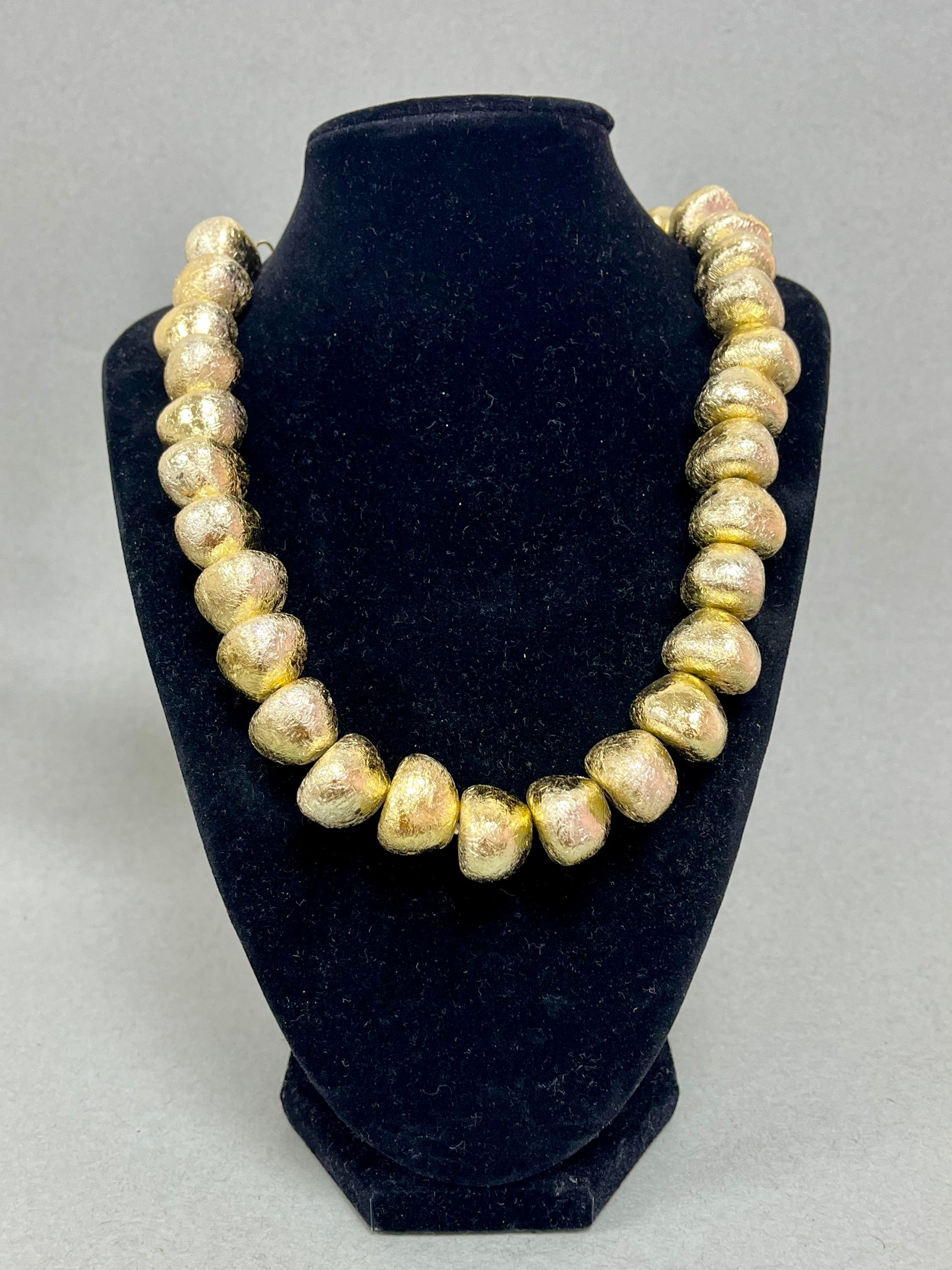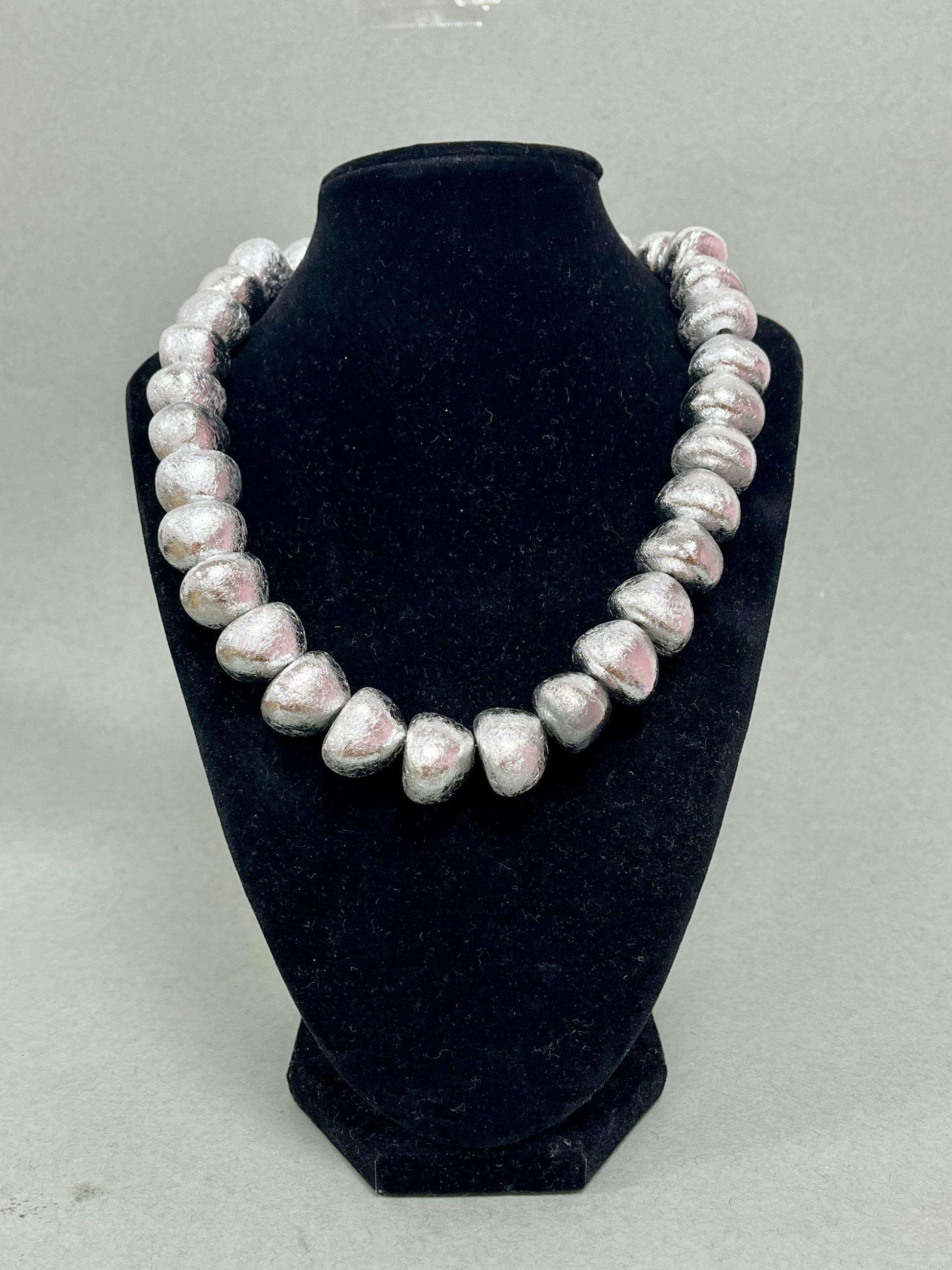 Matte Multi XL Textured Bead Necklace (Silver and Gold)