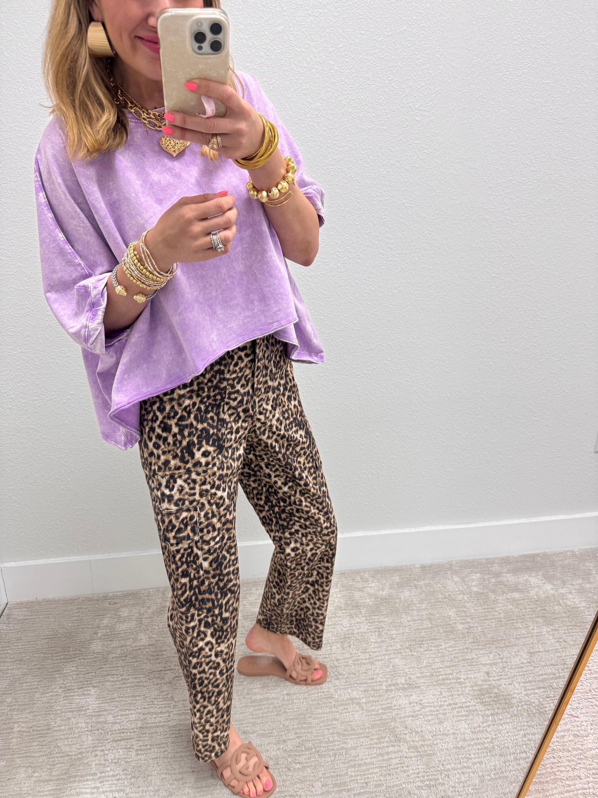 These are a FP look for less and soooo cute. They are cotton, longer in the back, and so amazing!! Oversized fit, Macy is a 2/4 and 5'7 wearing the small