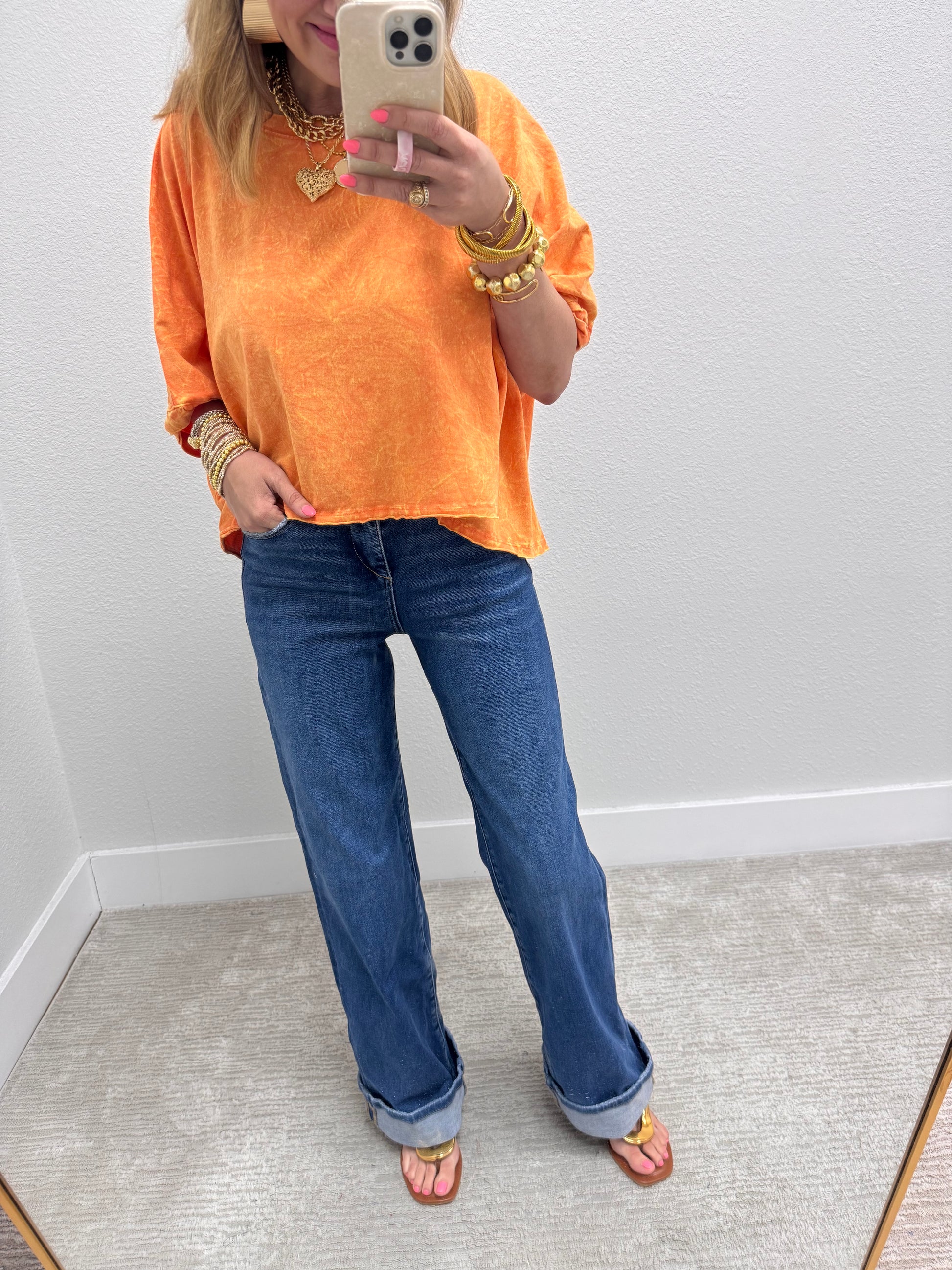 Mineral Washed Orange Oversized Round Neck Box Tee