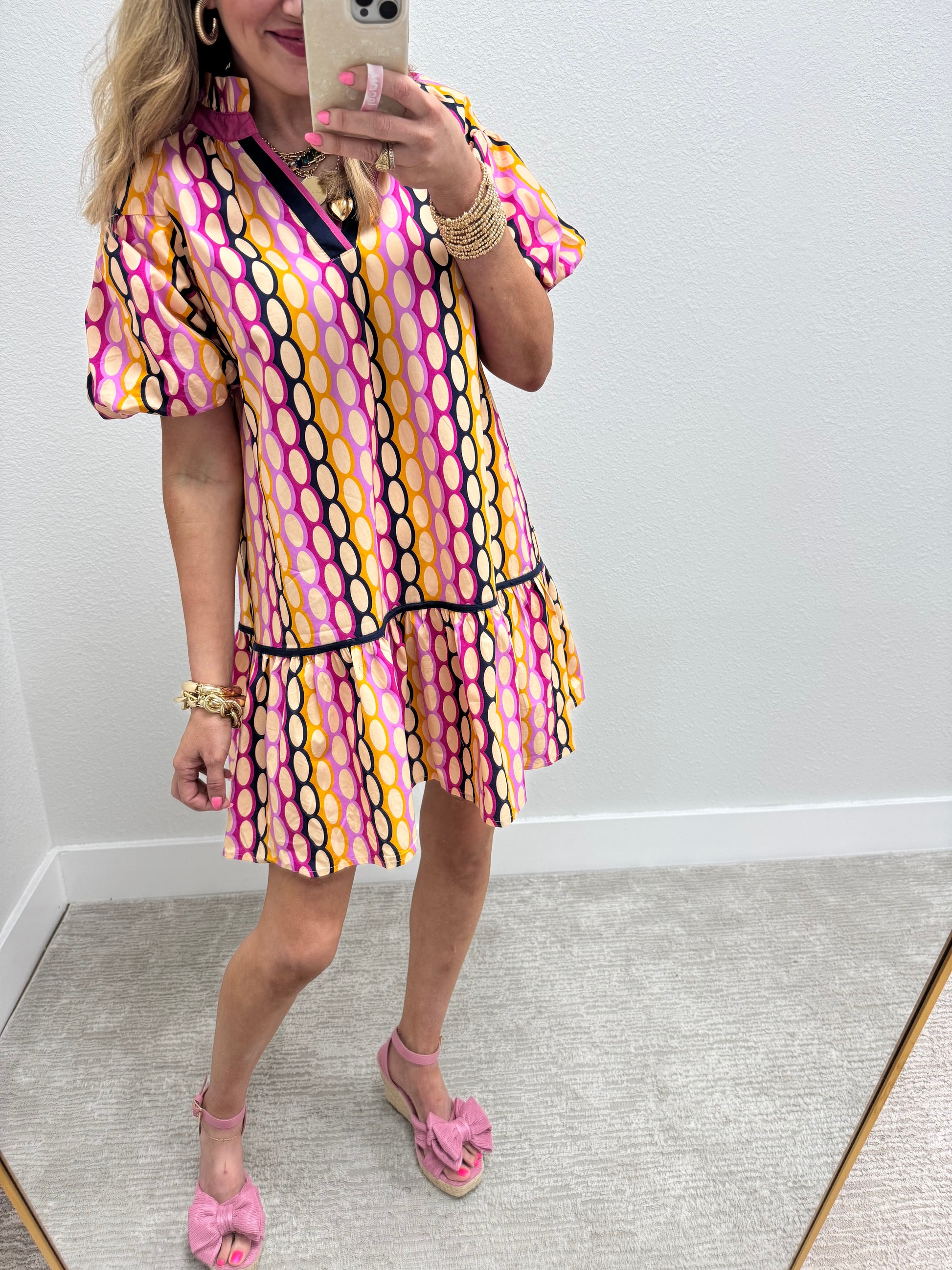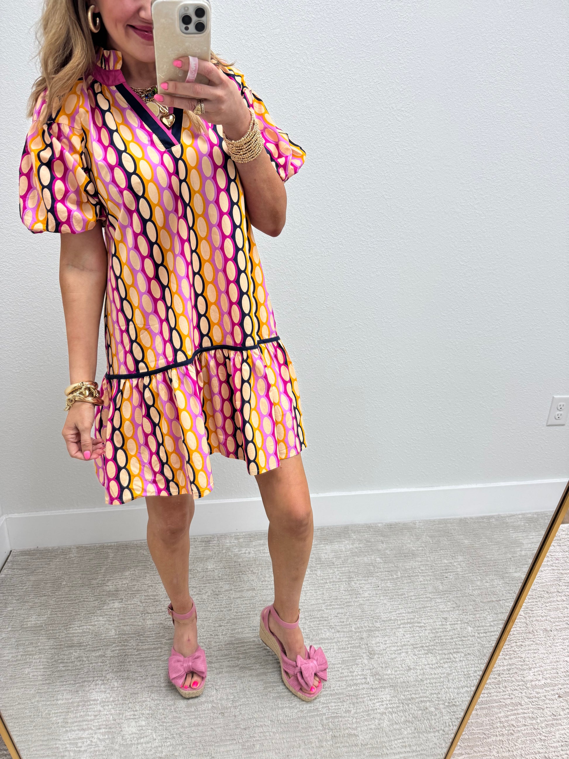 We love this dress so much we got it in 2 colors!! There is no stretch to the material but it is a relaxed/roomy fit, Macy is 2/4 and 5'7 wearing the small