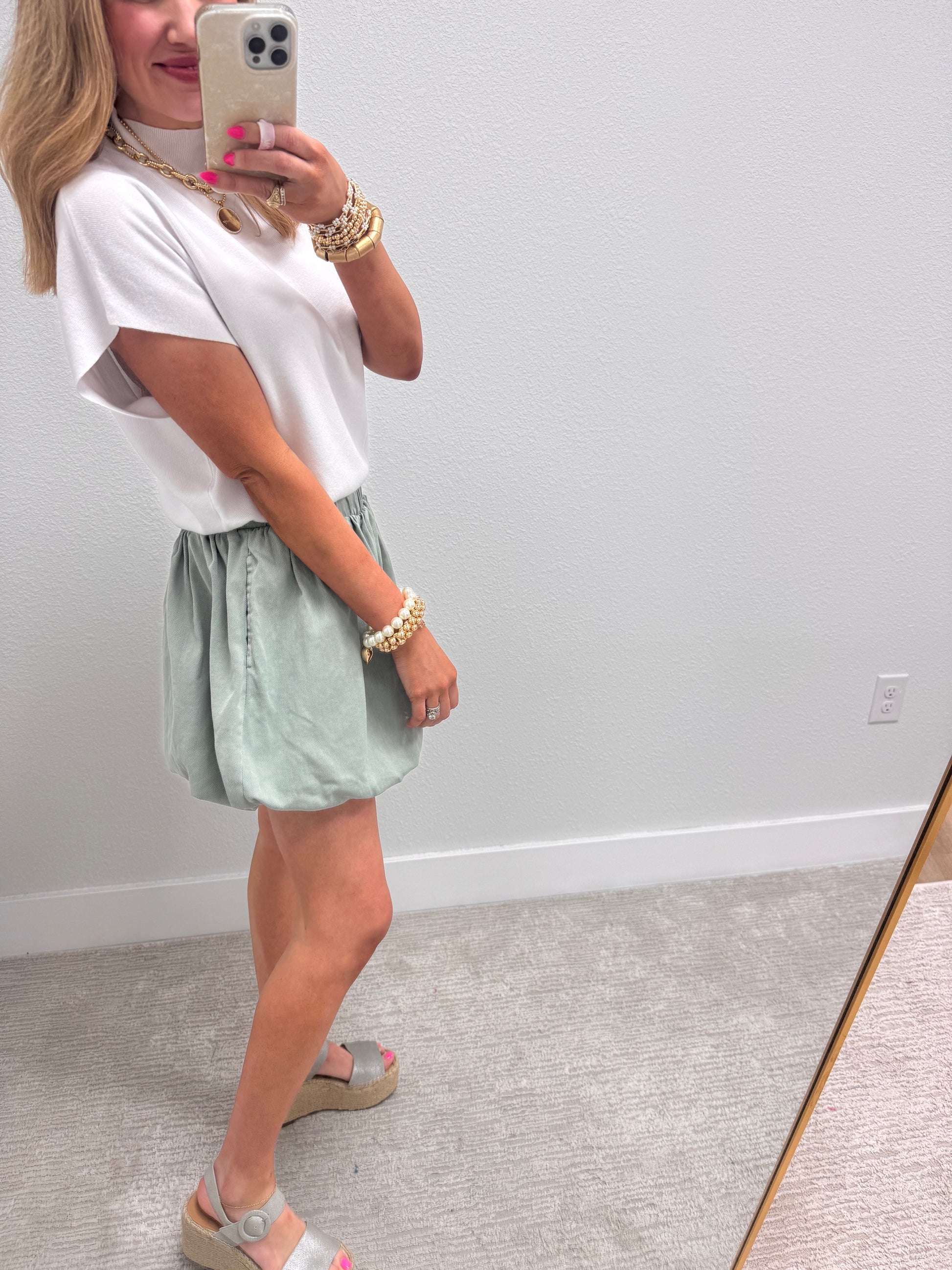 Simple, but cute!! Cute fit and super nice material. It’s a tts fit and is stretchy. Macy is a 2/4 and 5’7 wearing the small