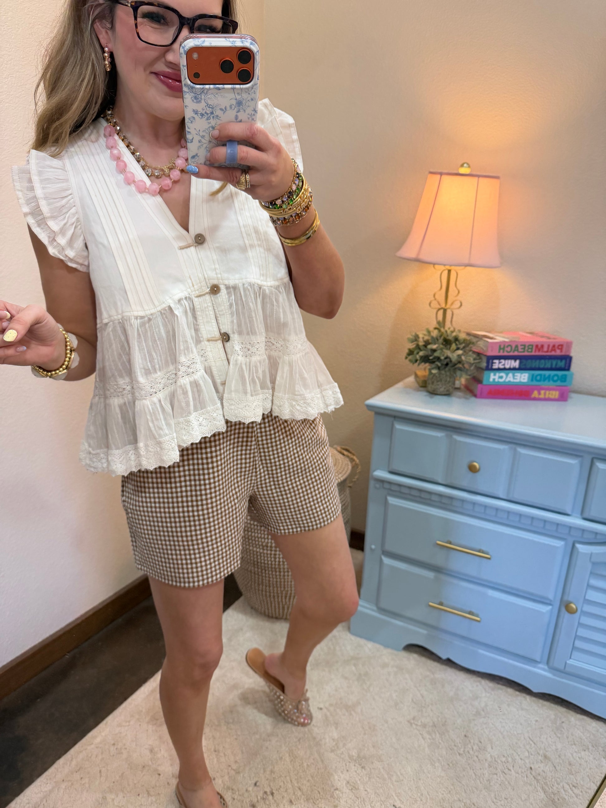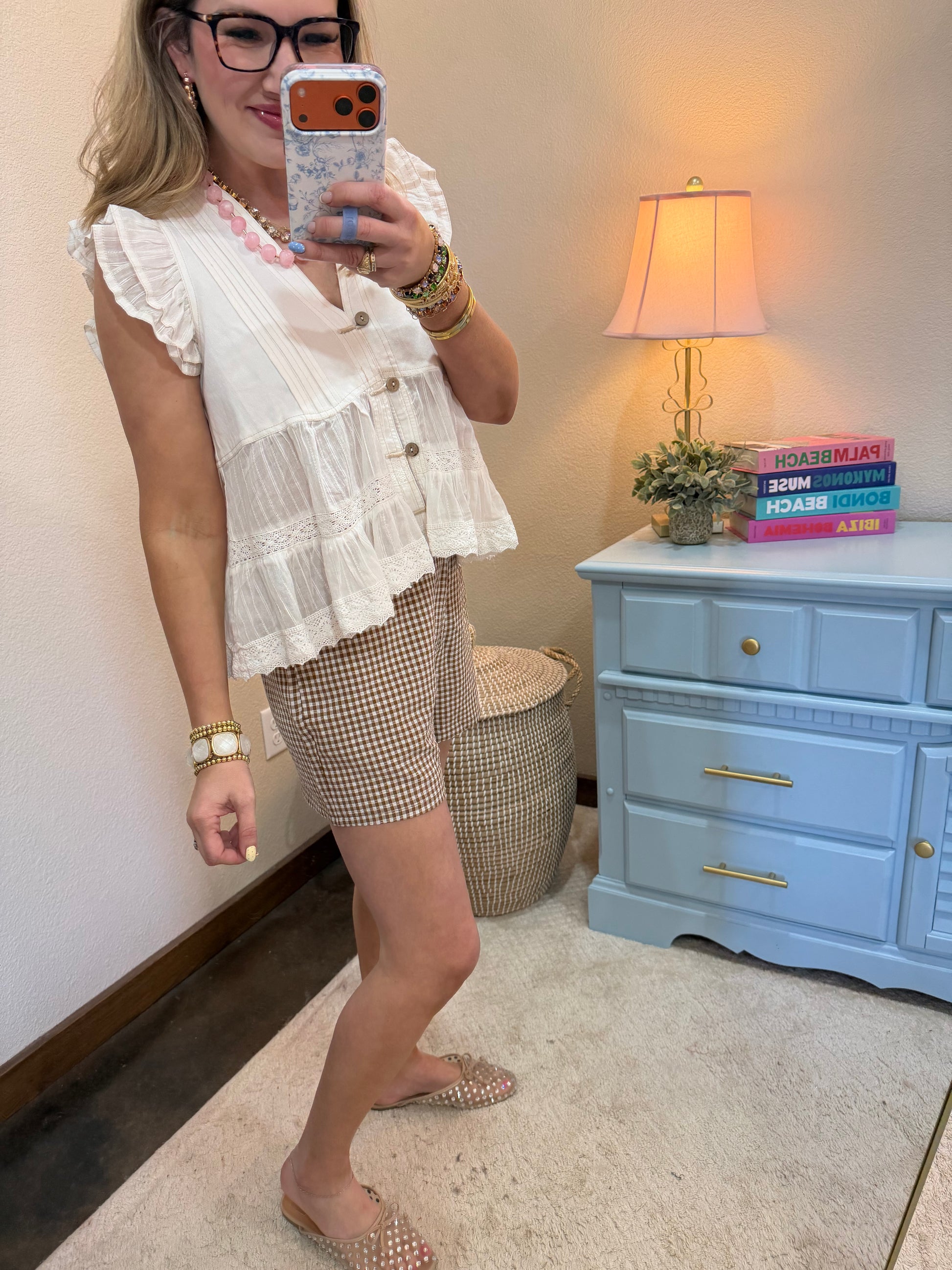 Elevate your wardrobe with this sophisticated off-white twill denim button-up top! The elegant pintuck pleating adds beautiful texture and dimension, creating a polished look that's perfect for both work and weekend. Crafted from quality twill denim, this top offers structure and style while remaining comfortable enough for all-day wear. The classic button-up design makes it incredibly versatile—wear it tucked into jeans or shorts for a refined look, or leave it untucked for a more relaxed vibe. This is the kind of elevated basic that instantly upgrades any outfit!
