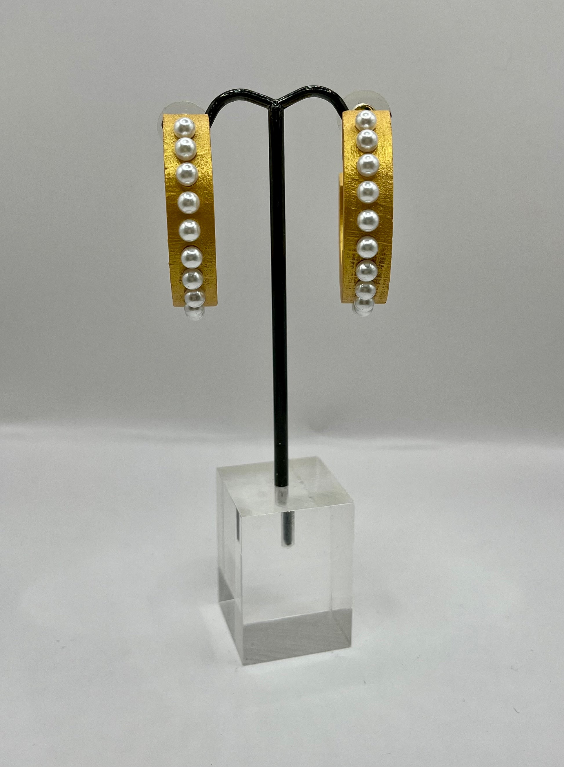 Pearl Studded Wood Hoops