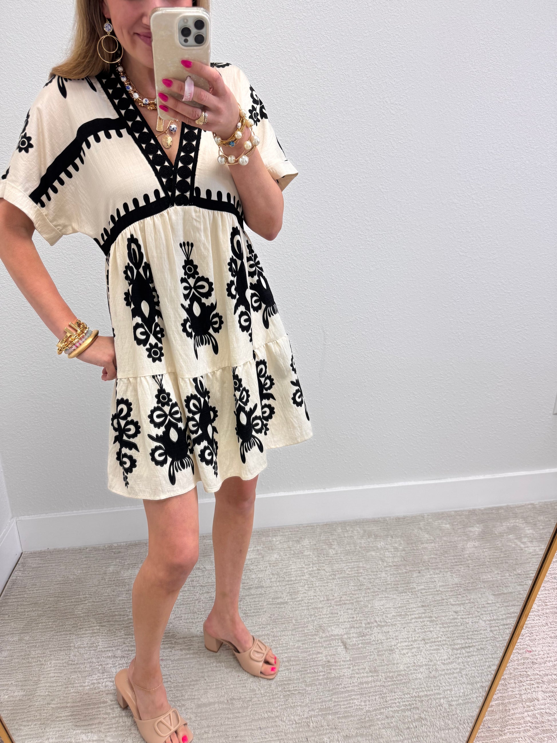 Our most popular print in a new dress. It’s so cute and a TTS fit with no stretch, Macy is a 2/4 & 5’7 wearing the small