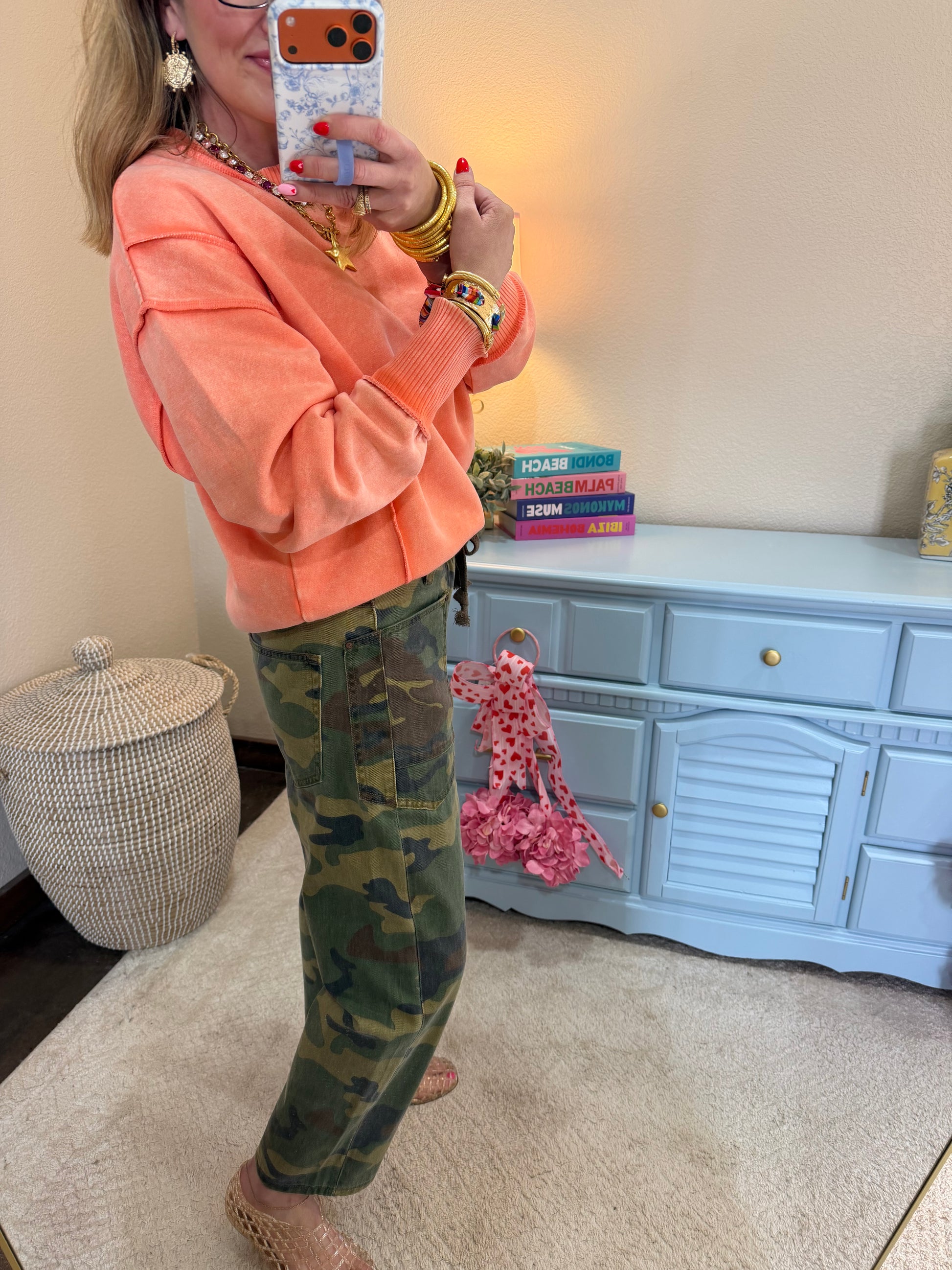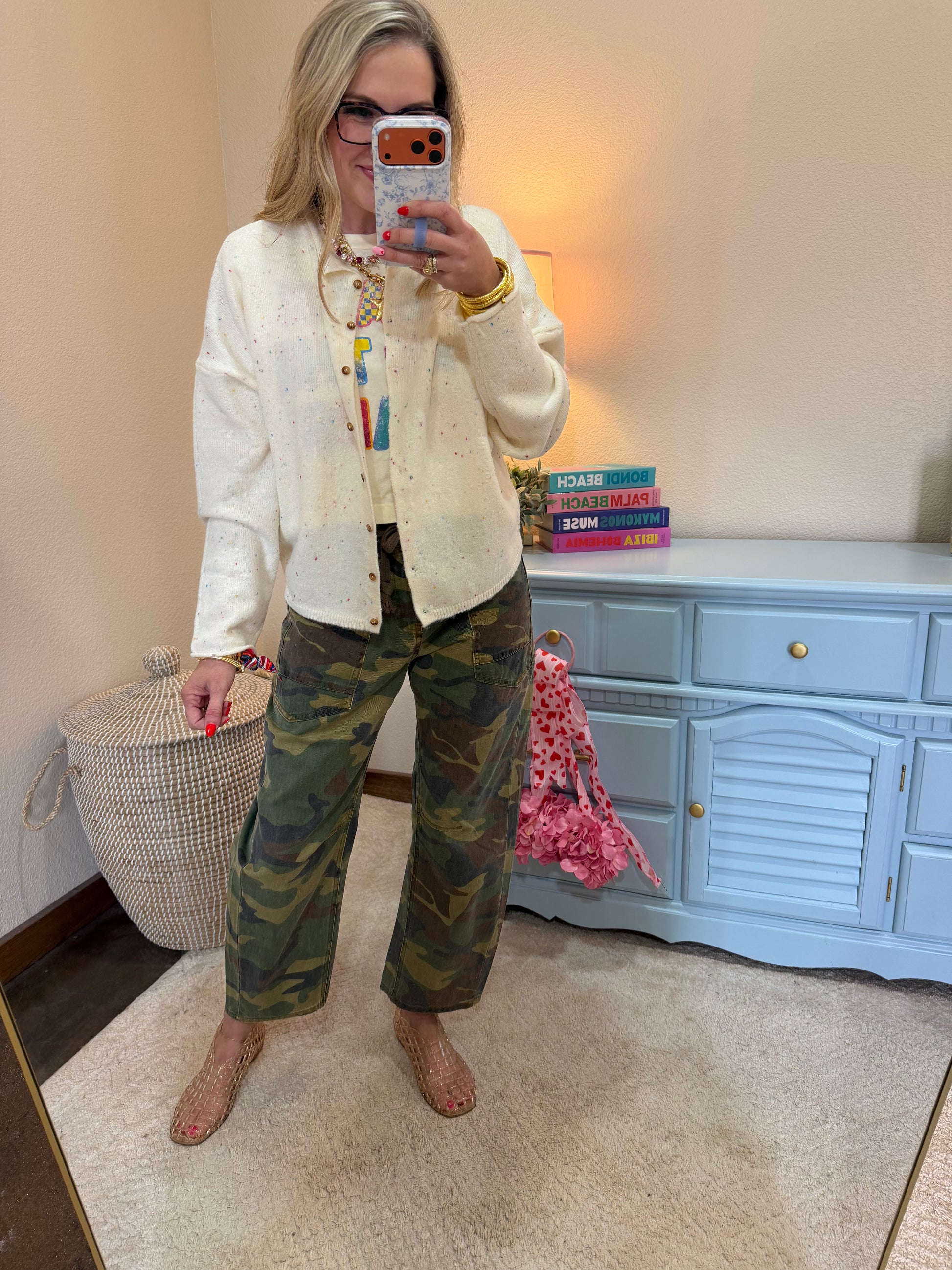 Make a bold statement with these Risen camo crop barrel jeans. Featuring a trendy barrel leg silhouette and eye-catching camo print, these jeans bring an edgy, fashion-forward vibe to your everyday wardrobe. The cropped length is perfect for showing off your favorite sneakers or boots, while the relaxed barrel fit offers all-day comfort without sacrificing style.