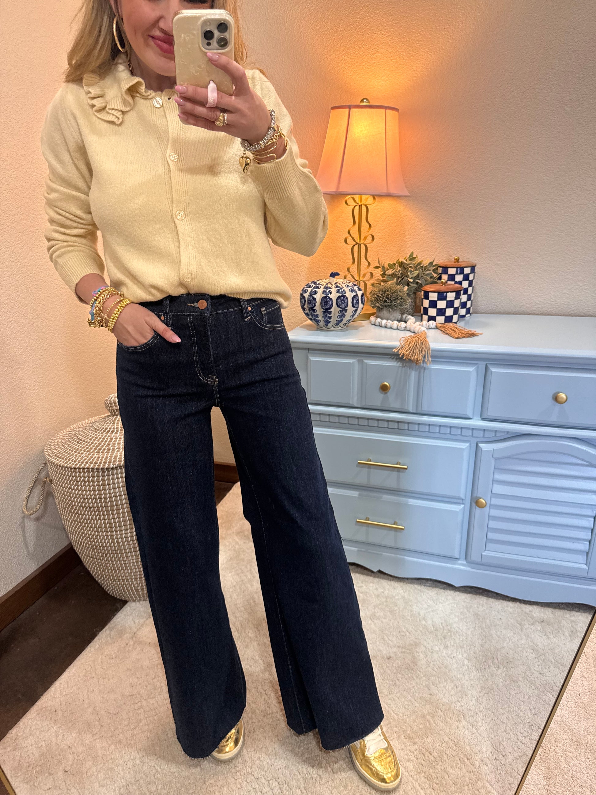 We love these new dark risen tummy control buttttt the best part is they have like tiny gold speckles in them. They have stretch and Macy is a 24/25 in jeans and she could do either size. She is 5’7 for height