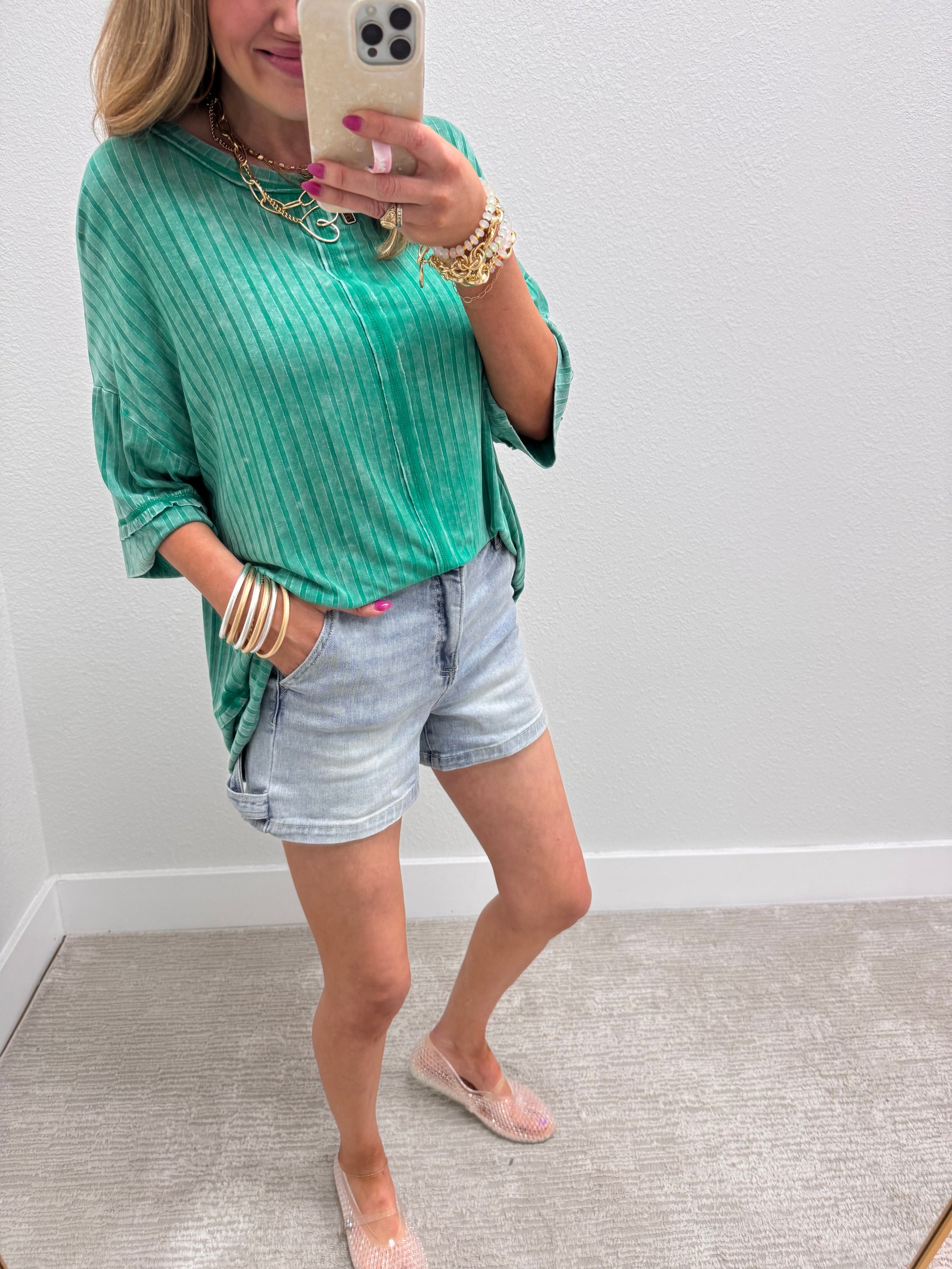 New Risen Utility shorts & we LOVE these because they have just the one little detail making them “utility” but then like trouser pockets in the front so still such a classy little short. They are stretchy, high rise, and about a 3.5” inseam. Macy is a 24/25 wearing the small with some room, she is 5’7