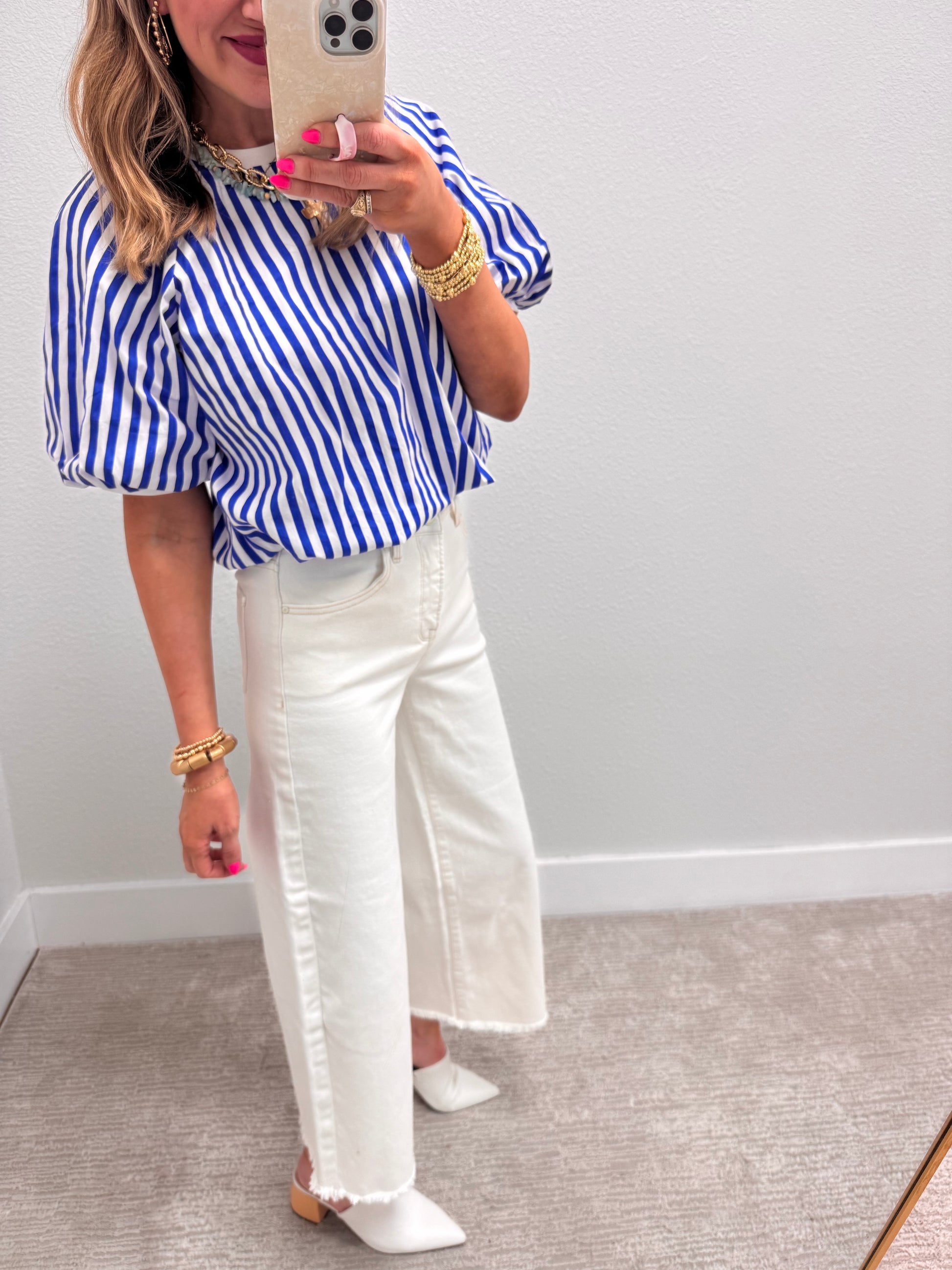 We loved this top so much we got it in 3 colors! It is a super adorable bubble fit and the prettiest colors. These are 100" cotton so there is no stretch, it is a TTS fit, Macy is a 2/4 and 5'7 wearing the small