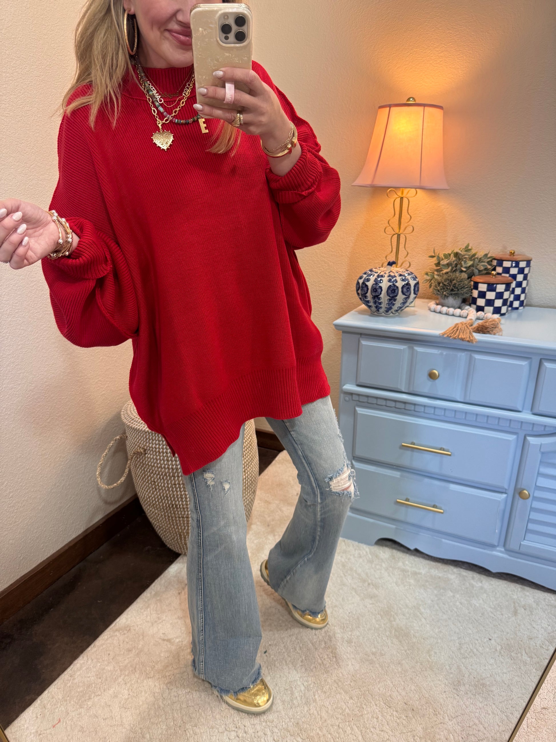 Our #1 selling sweater is back. This is our #1 selling sweater of All Time, for a reason! It is an identical lookalike to the FP version, amazing quality, and just a classic sweater you will LOVE wearing. These are 56% Cotton, 38% Acrylic, 6% Nylon and are a roomy fit, Macy is a 2/4 and 5’7 wearing the L/XL