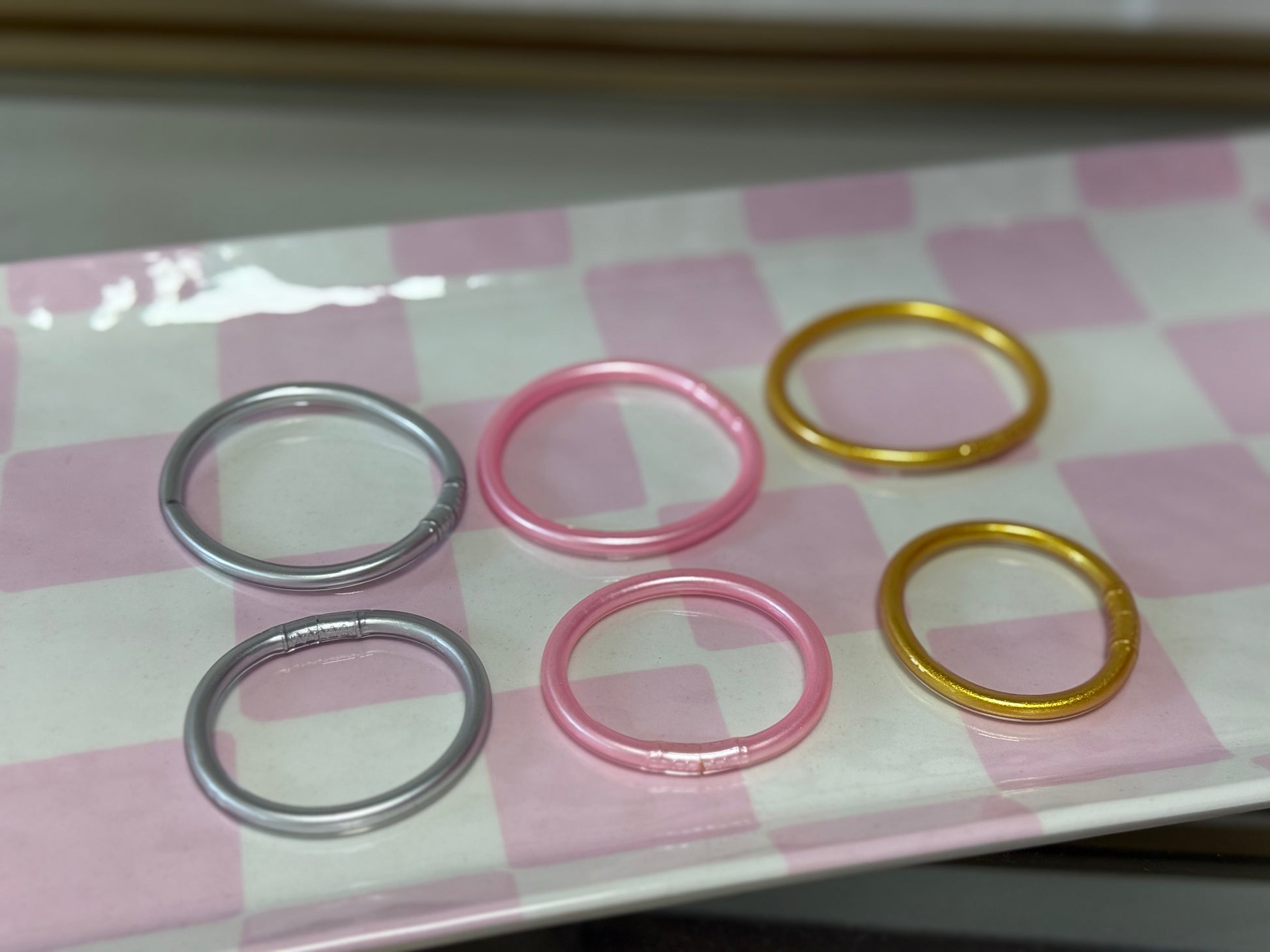 Set of 2 Little Girls Bracelets (Pink, Silver, Gold)