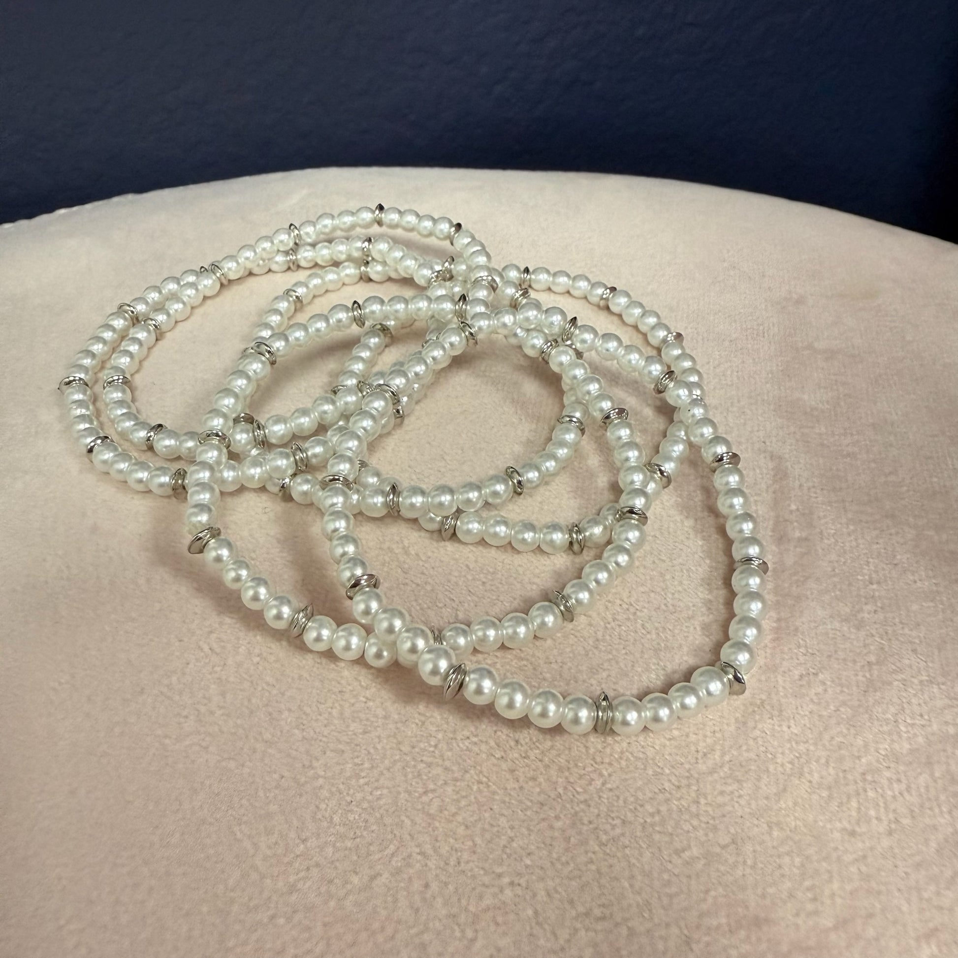 Set of 5 Pearl and Silver Bead Bracelet