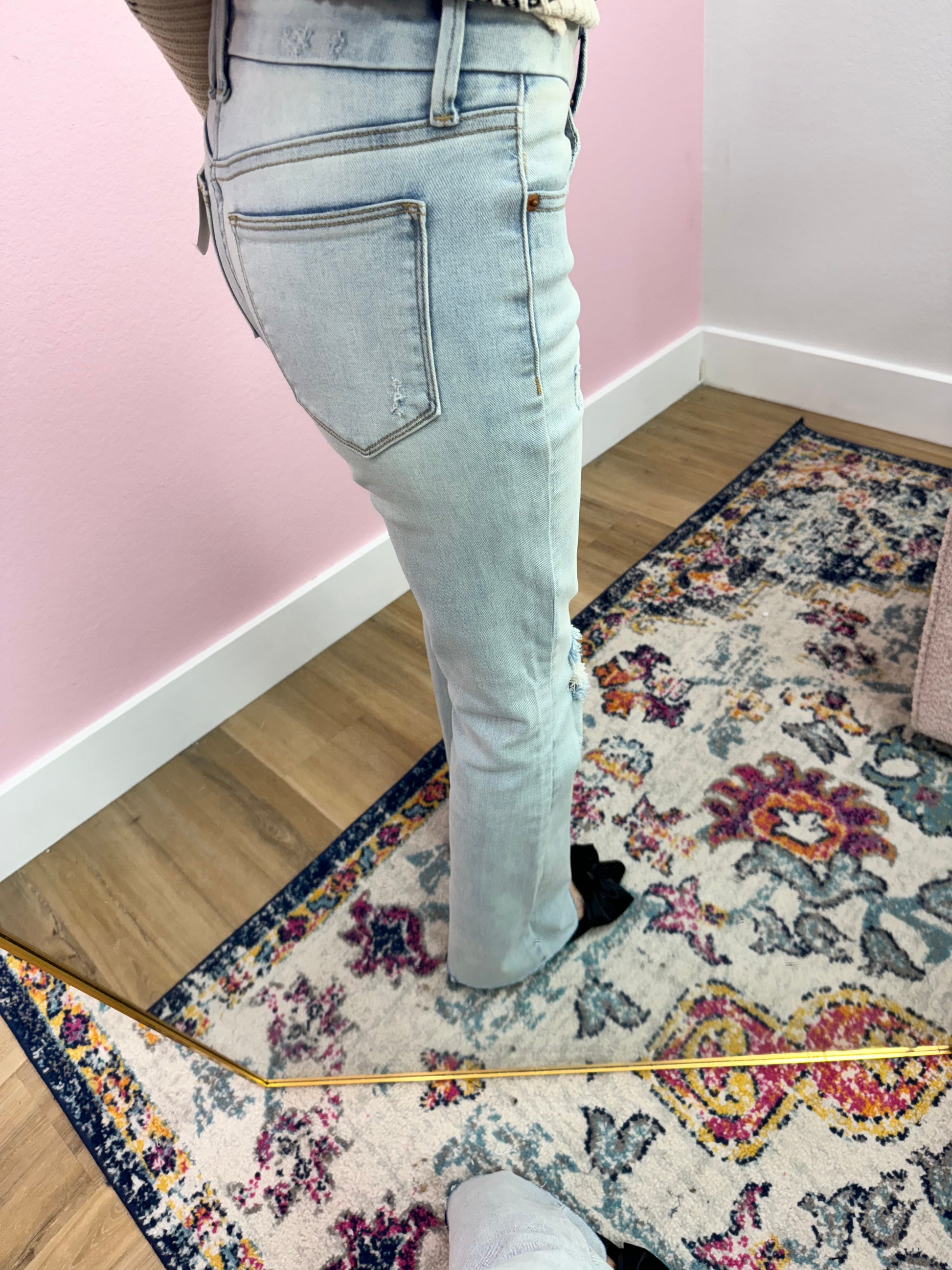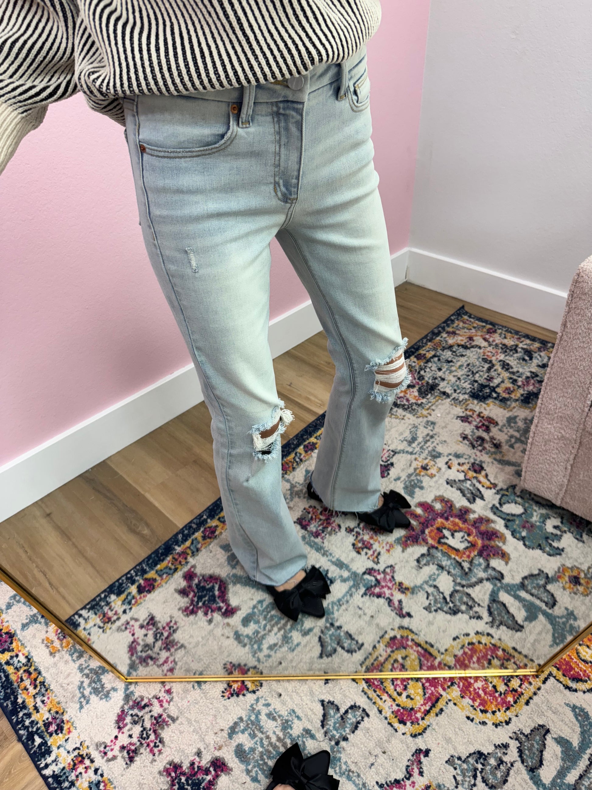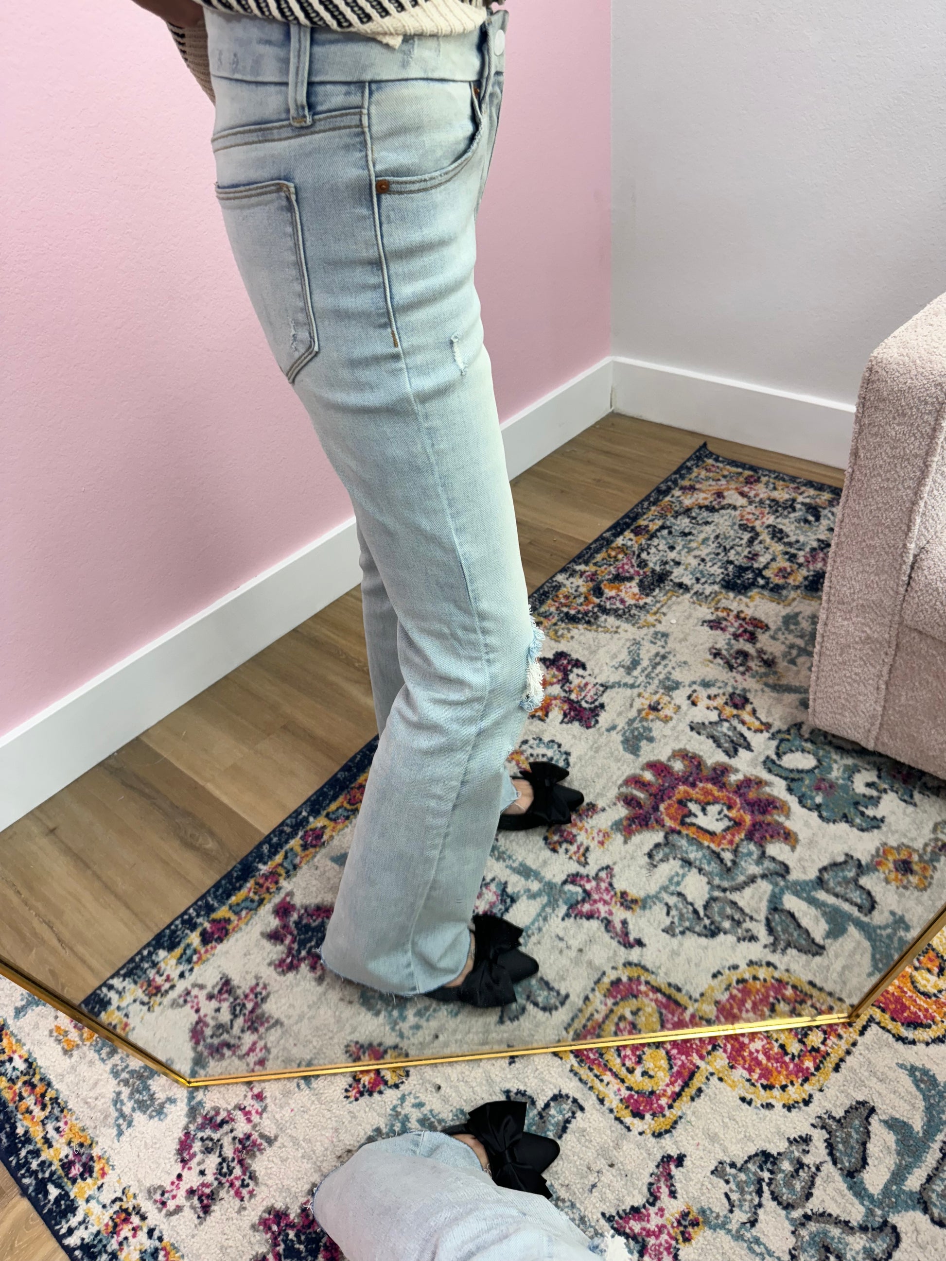 Sneak Peek Light Wash Mid Rise Boot Cut
