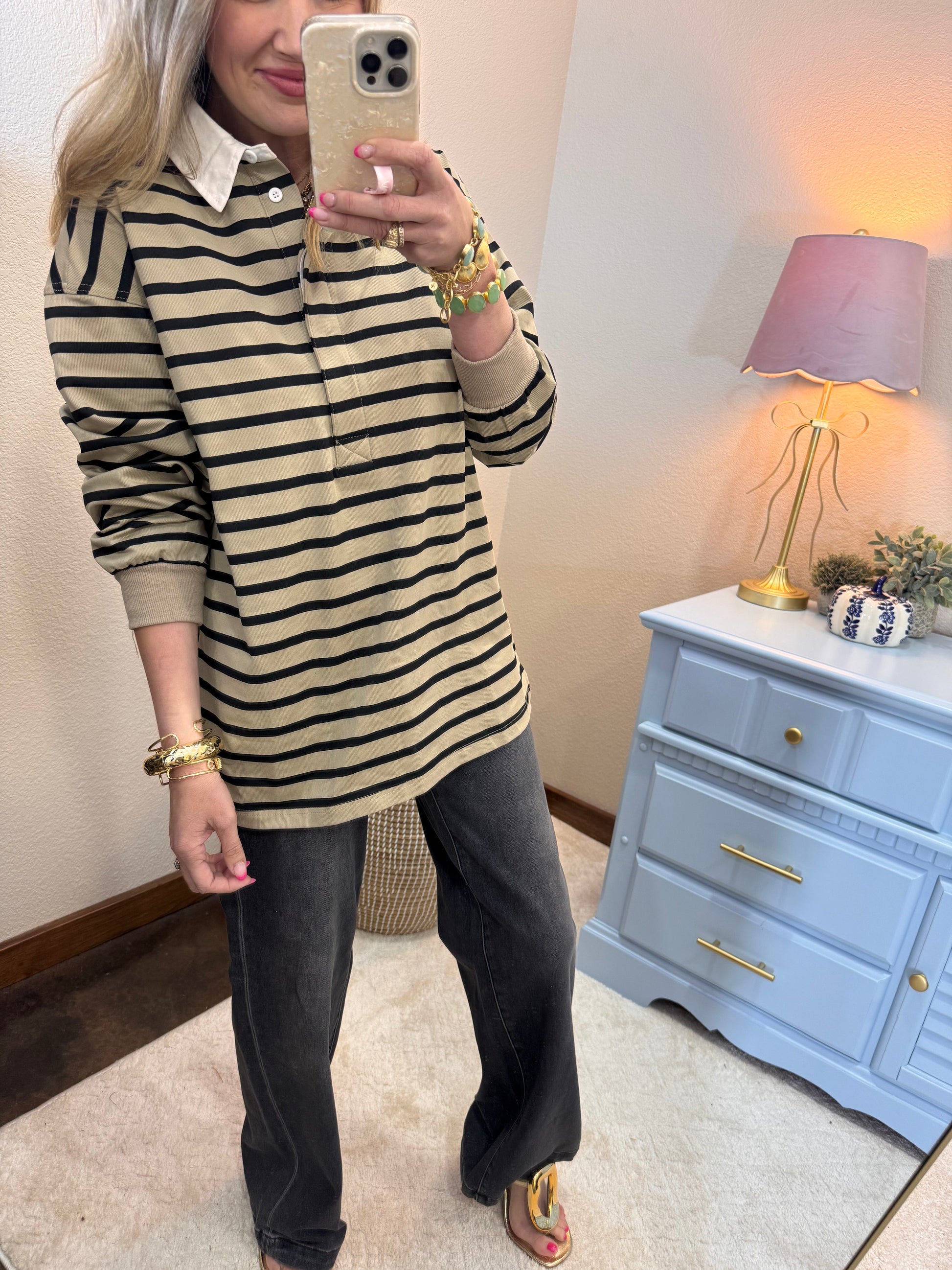 We are SO excited for these adorable tops!! A FP look for less and the cutest fit ever, longer and a cute collar. Relaxed fit, Macy is a 2/4 and 5’7 wearing the small