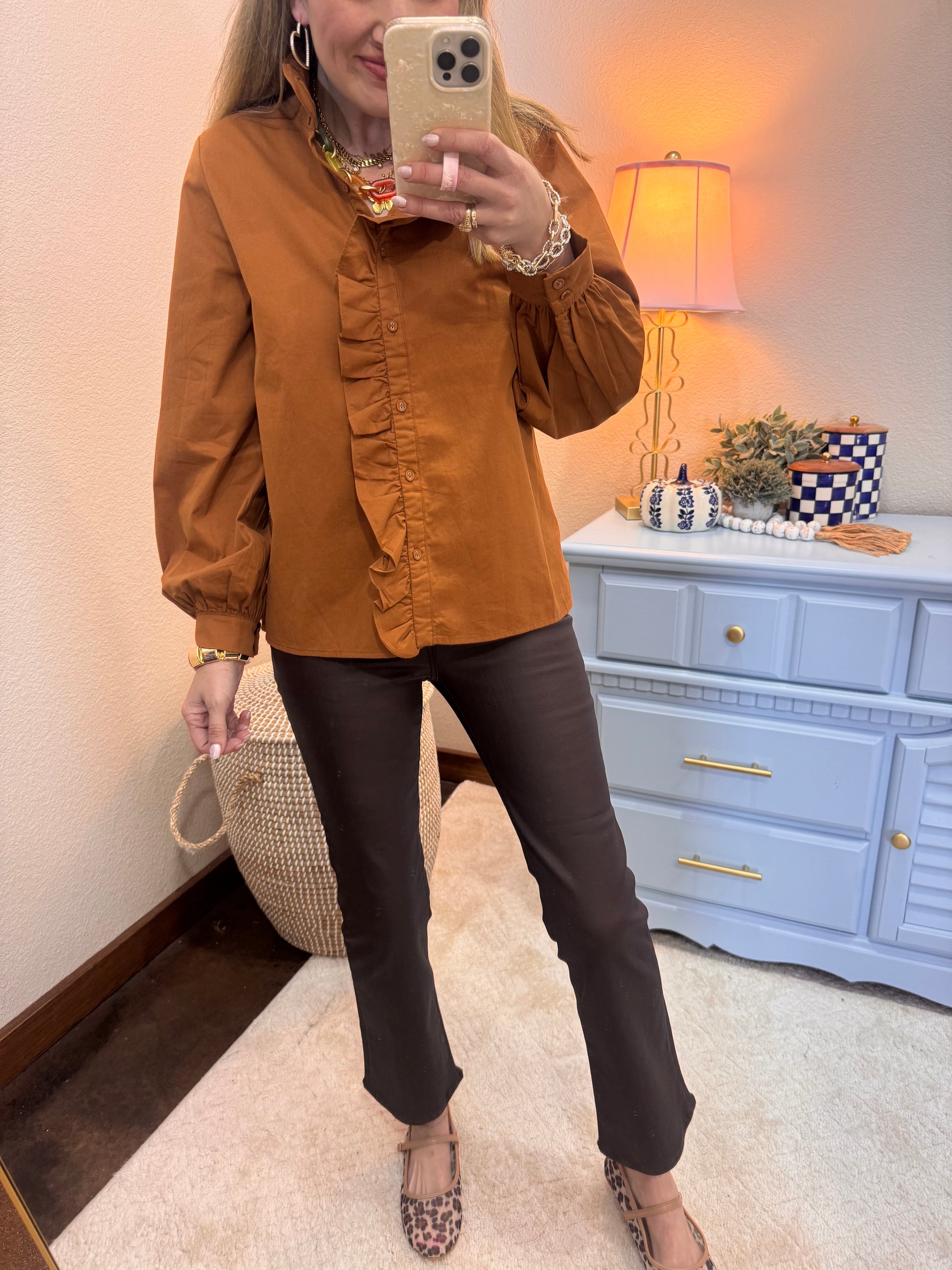 Toffee Long Sleeve Button Top