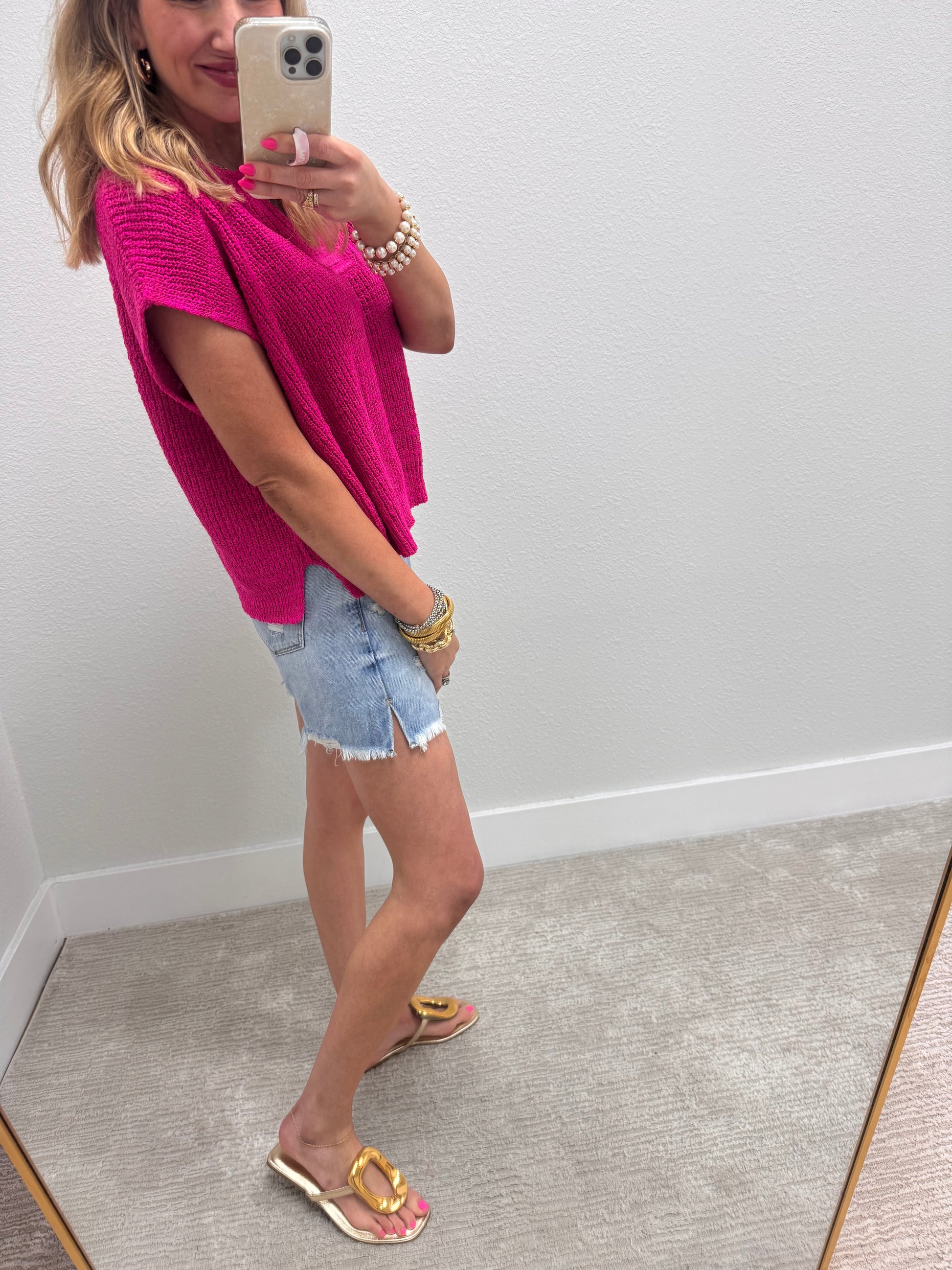 Pink Knit Short Sleeve Top