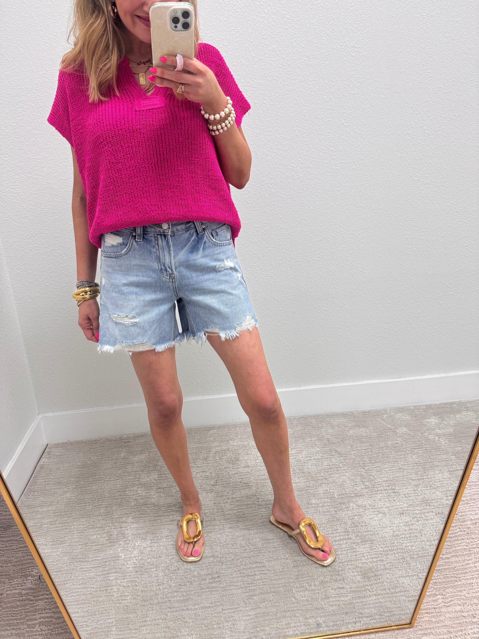 One of our favorite tops, such a great knit material and a really cute loose and relaxed fit. Macy is a 2/4 and 5’7 wearing the small