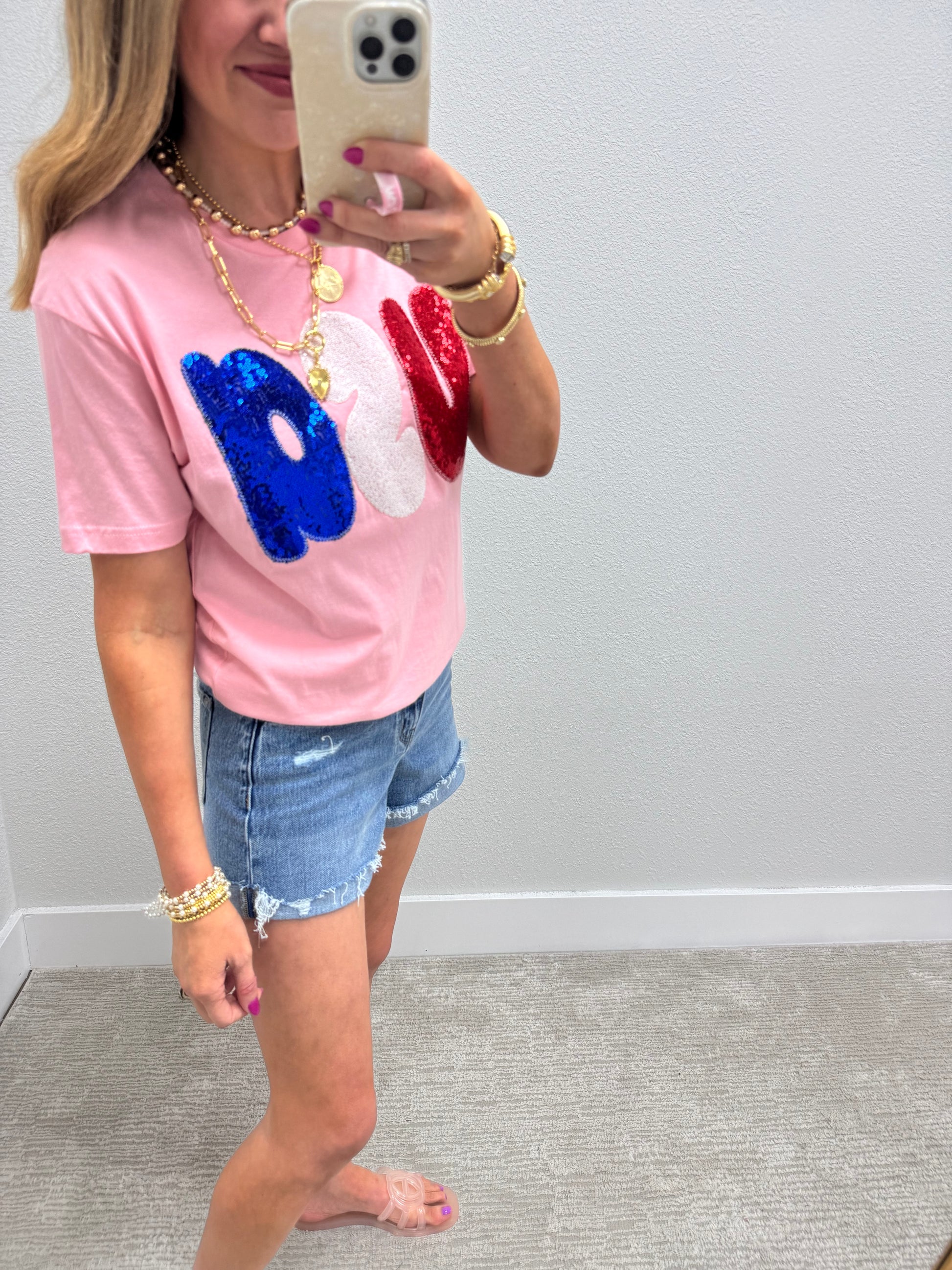 USA Sequin Appliqué Stitched Short Sleeve FS