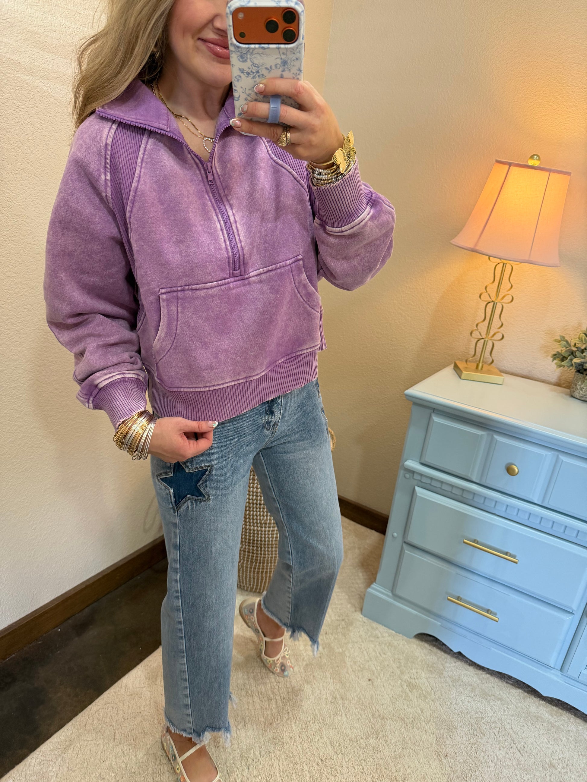 Violet Acid Washed Half Zip Fleece Pullover