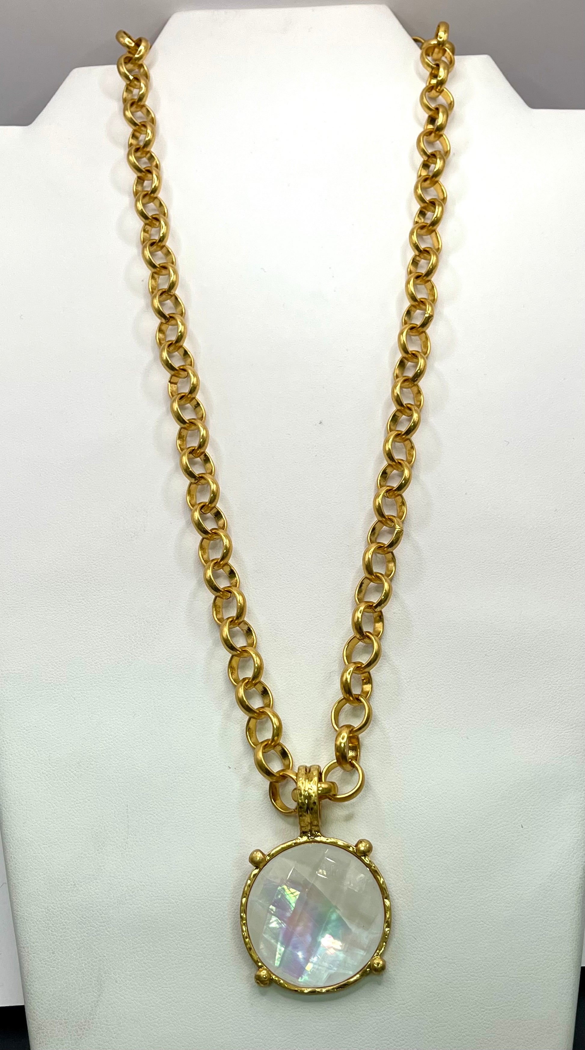 White Antique Round Stone Pendant Necklace