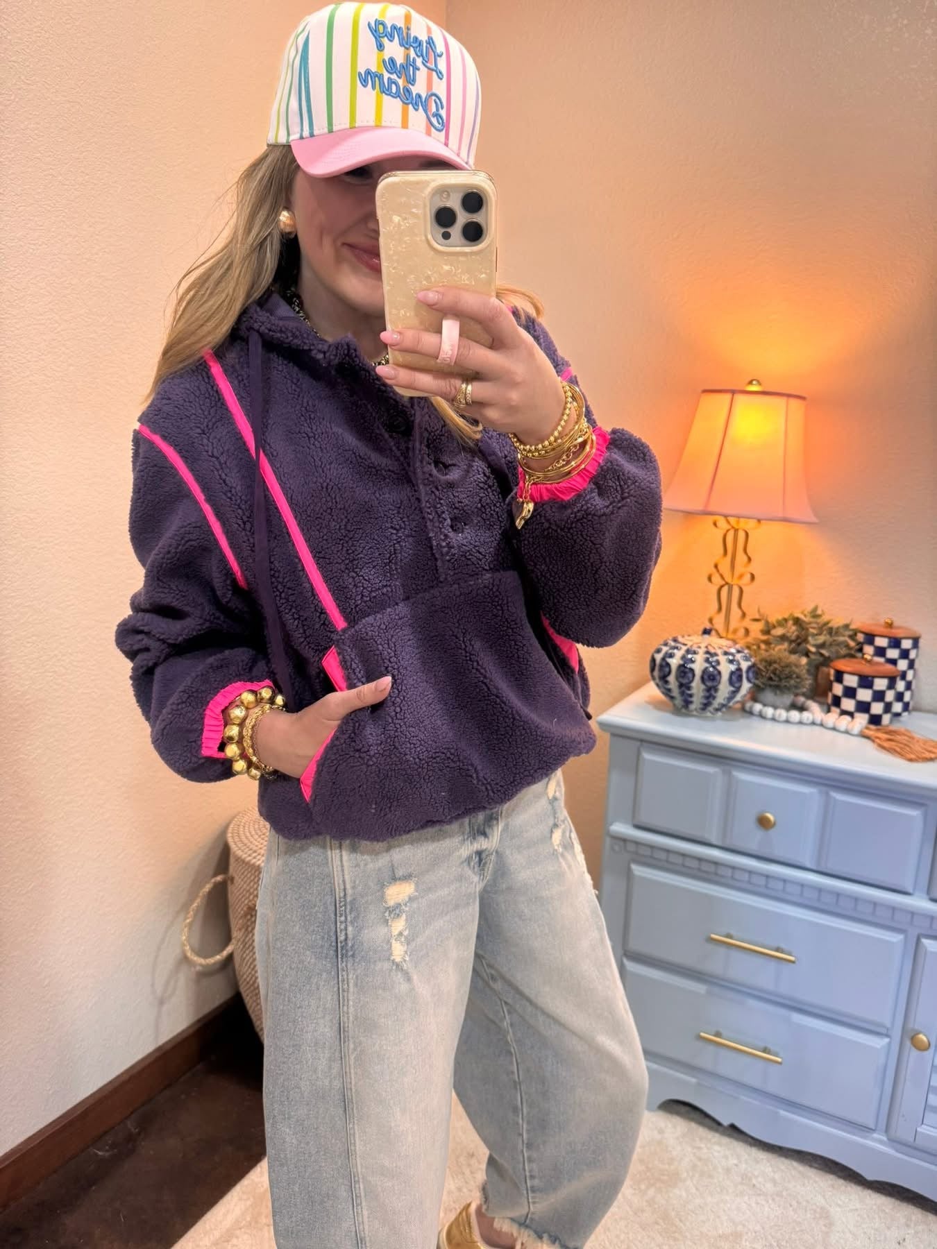 Purple & Neon Pink Sherpa Buttoned Hoodie